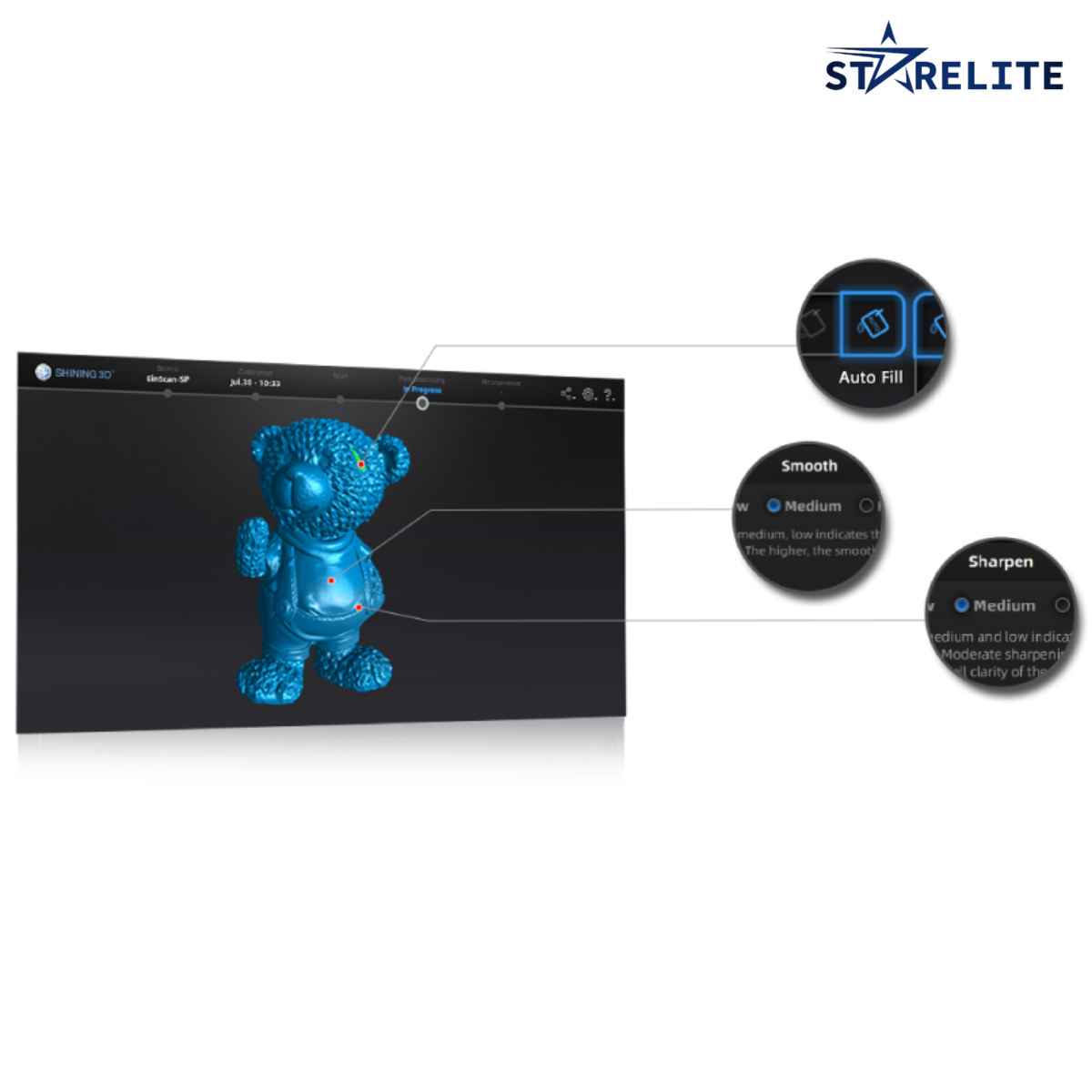 • Phần mềm EXSCAN PRO trực quan, hỗ trợ nhiều định dạng xuất dữ liệu (STL, OBJ, ASC).