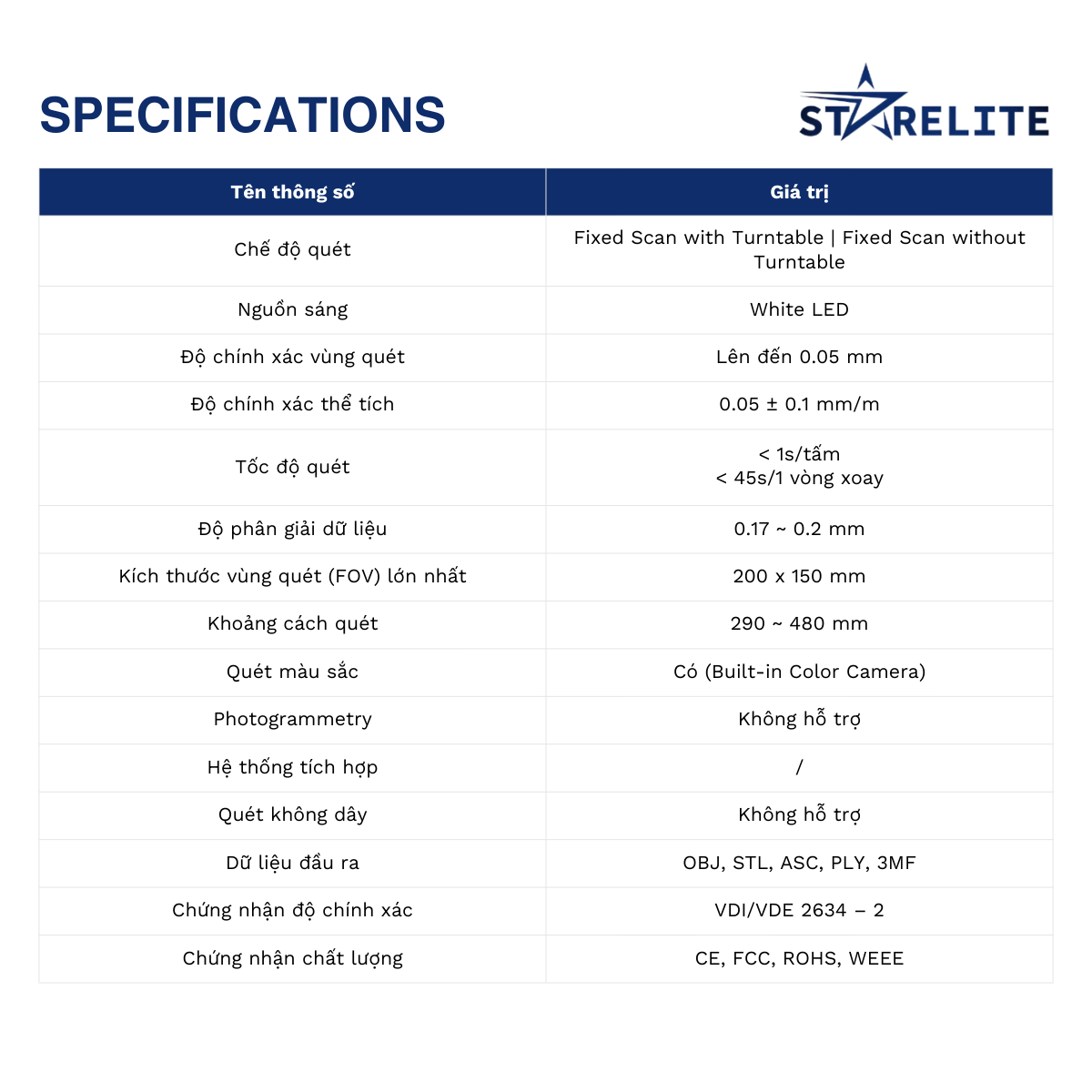• Độ chính xác quét: ≤ 0,05 mm.