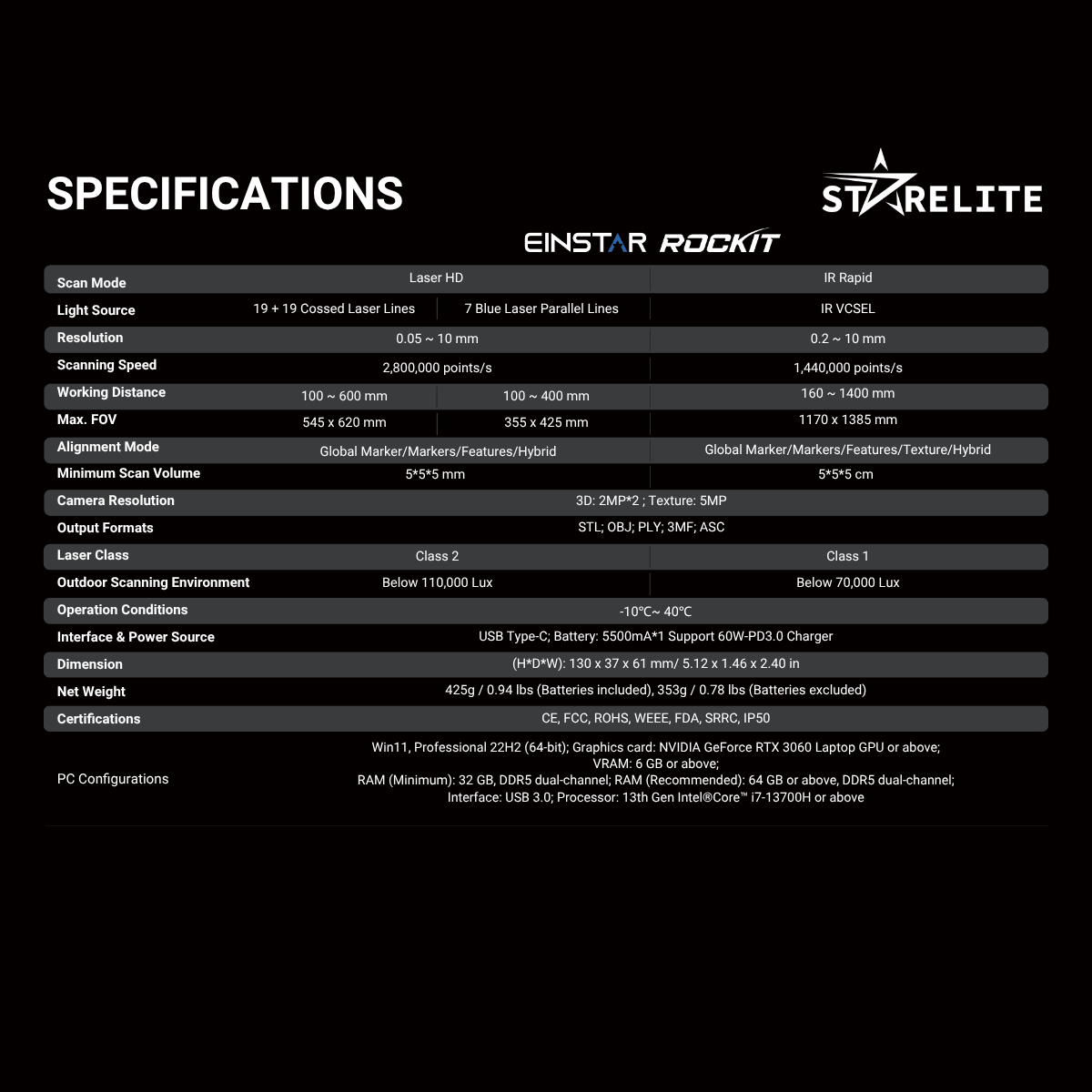 EinStar Rockit là máy quét 3D cầm tay thế hệ mới, hội tụ tính di động, không dây, tốc độ cao và quét màu chân thực. Với nguồn sáng lai và phần mềm mạnh mẽ, Rockit mang lại hiệu quả vượt trội trong cả công nghiệp lẫn sáng tạo số, là lựa chọn lý tưởng cho những ai cần giải pháp quét 3D linh hoạt và chính xác.