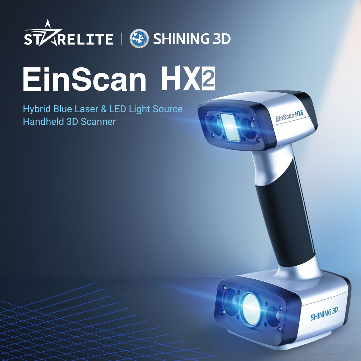 EinScan HX2 là thế hệ máy quét 3D cầm tay cao cấp của Shining 3D, tích hợp công nghệ nguồn sáng kết hợp giữa laser xanh và LED. Thiết bị mang lại độ chính xác chuẩn đo lường, tốc độ vượt trội và khả năng quét màu, đáp ứng tối ưu cho cả nhu cầu công nghiệp lẫn sáng tạo.