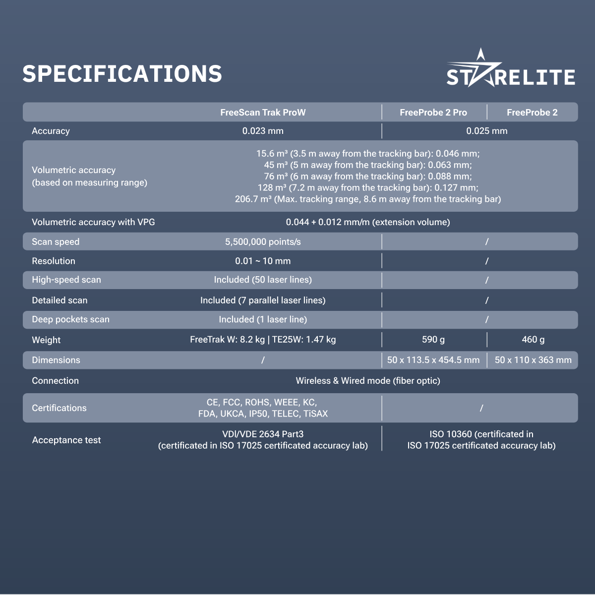 Máy quét FreeScan Trak ProW là giải pháp tiên tiến cho đo lường 3D quy mô lớn, kết hợp khả năng theo dõi chuyển động không dây, không cần marker, quét chính xác theo tiêu chuẩn metrology.