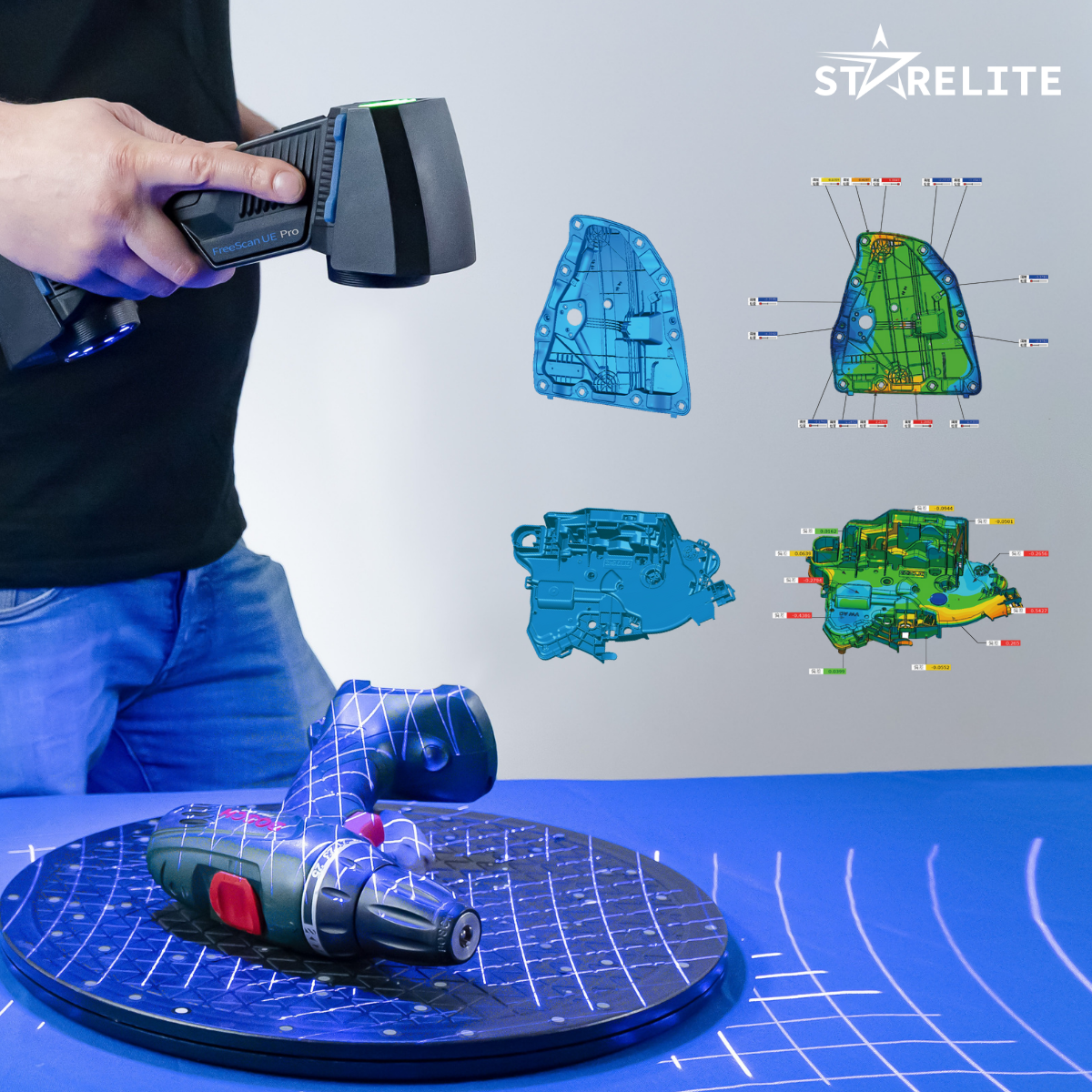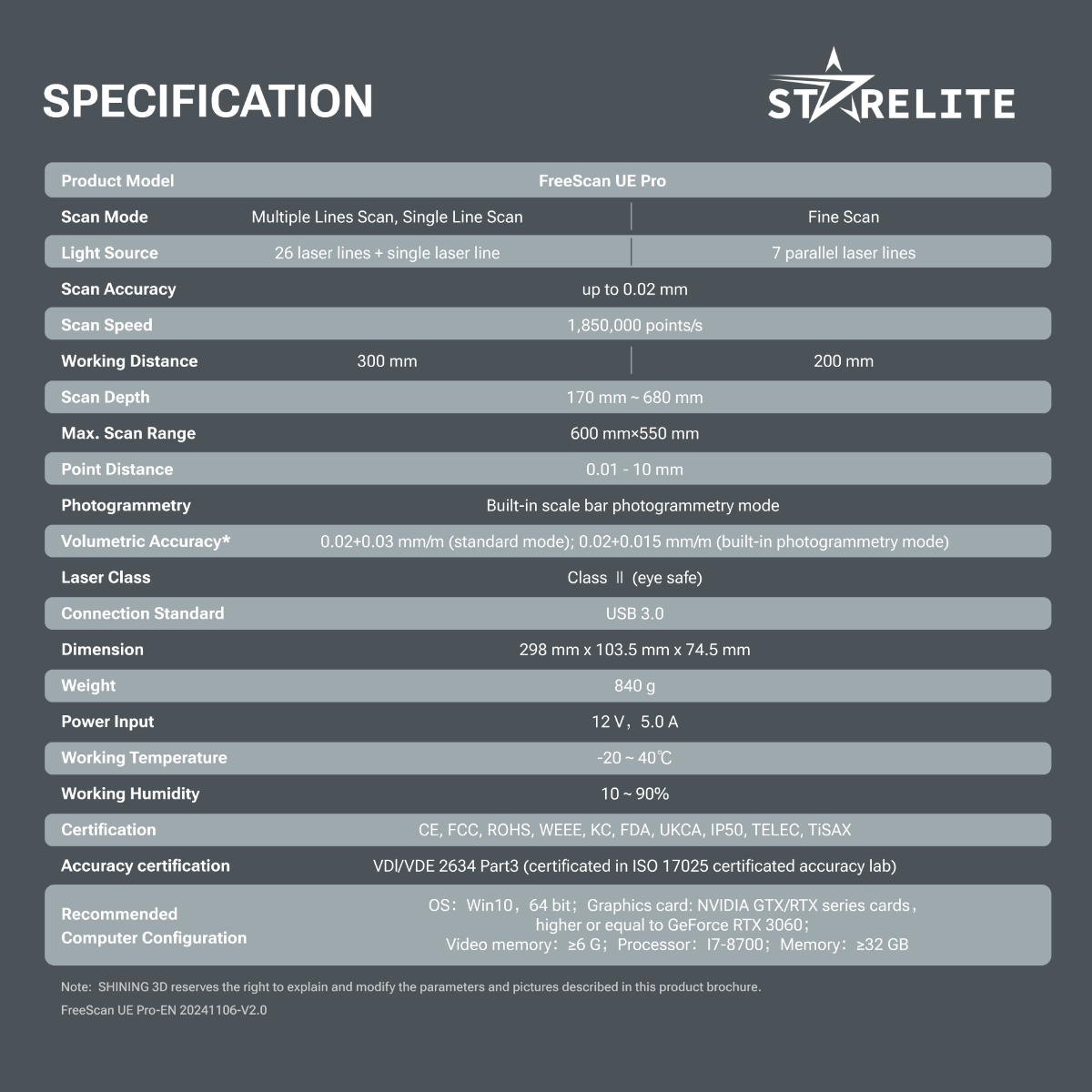 FreeScan UE Pro kế thừa thiết kế nhẹ nhàng, độ chính xác cao của dòng UE, đồng thời nâng cao khả năng quét chi tiết và kiểm soát độ chính xác thể tích (volumetric) đối với các vật thể quy mô lớn.